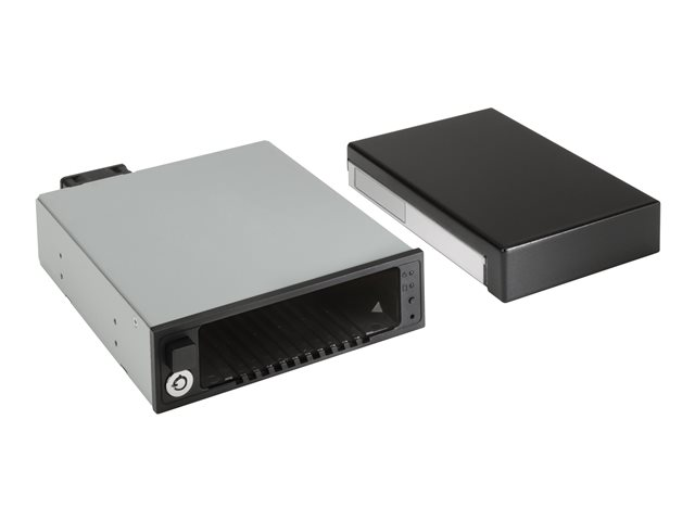 - En mottagande ram och hållare för en 3 Gbit/s SAS- eller SATA-hårddisk. Den mottagande ramen installeras i ett av 5,25-tumsfacken för optiska enheter i arbetsstationen. Hårddisken placeras i hållaren som har ett handtag med snabbkoppling för isättning/borttagning. Installera alla kompatibla HP 3,5-tumshårddiskar som stöds i hållaren. SATA-diskar kan endast användas när de är anslutna till arbetsstationens integrerade SATA-styrenhet.