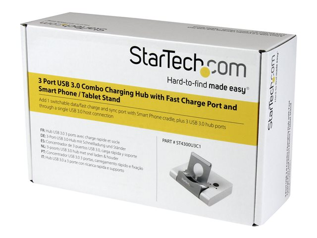 ST4300U3C1 - StarTech.com 3 Port USB 3.0 Hub plus Combo Fast Charge Port (2.1A) with Smartphone / Tablet Stand