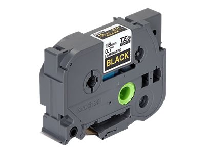 guld på svart - Rulle (1,8 cm x 8 m) 1 kassett(er) bandlaminat - för Brother PT-D600, P750, P950; P-Touch PT-18, 3600, 9800, D450, D800, E500, E550, P750, P900