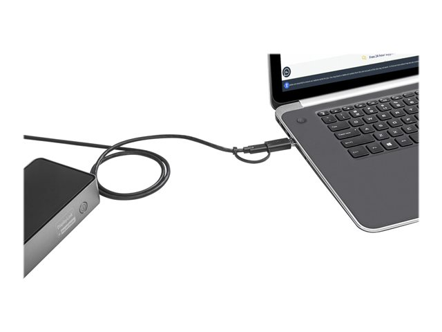 - UNIVERSELL DOCKNINGSSTATION: Hybriddockningsstation med kombinationen 2-i-1 USB-C/USB-A USB-IF-certifierad värdkabel; säker skruvlåsning på dockningsstationen och kabeln som förhindrar oavsiktlig frånkoppling och att kabeln tappas bort; TB3-kompatibel
